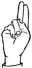 На ћирилици написано ИВАНА ГАЋЕ састоји се из 9 слова [?]. Исписано ћириличном једноручном азбуком за глувонеме: